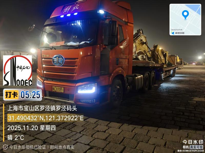 On November 20th, our company successfully shipped an XCMG XE750GK excavator. It arrived at Shanghai Port in the early morning, ready for loading onto the ship.
